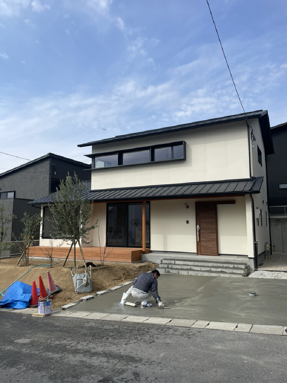 外壁はベルアートの吹き付け仕上げも完成しました!足場を解体して全体図が見えるのはまもなくです!
